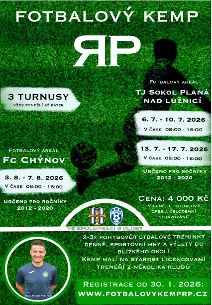 - Sportovní 263, 391 55, Chýnov (vedoucí turnusu David Perl - vedoucí projektu partnerských klubů SK Slavia Praha, trenér TM UEFA A)